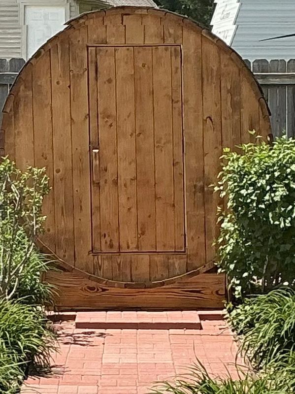 Custom barrel sauna for cabin rental customer in Broken Bow, OK